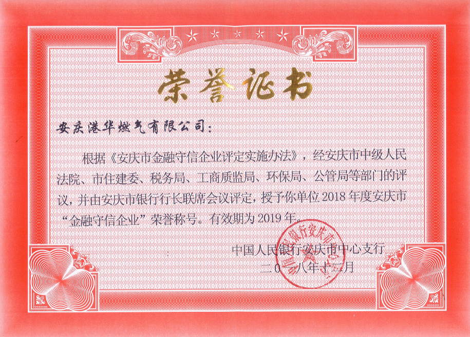 安慶港華再次榮獲“金融守信企業(yè)”稱號(hào)