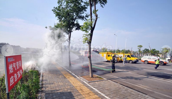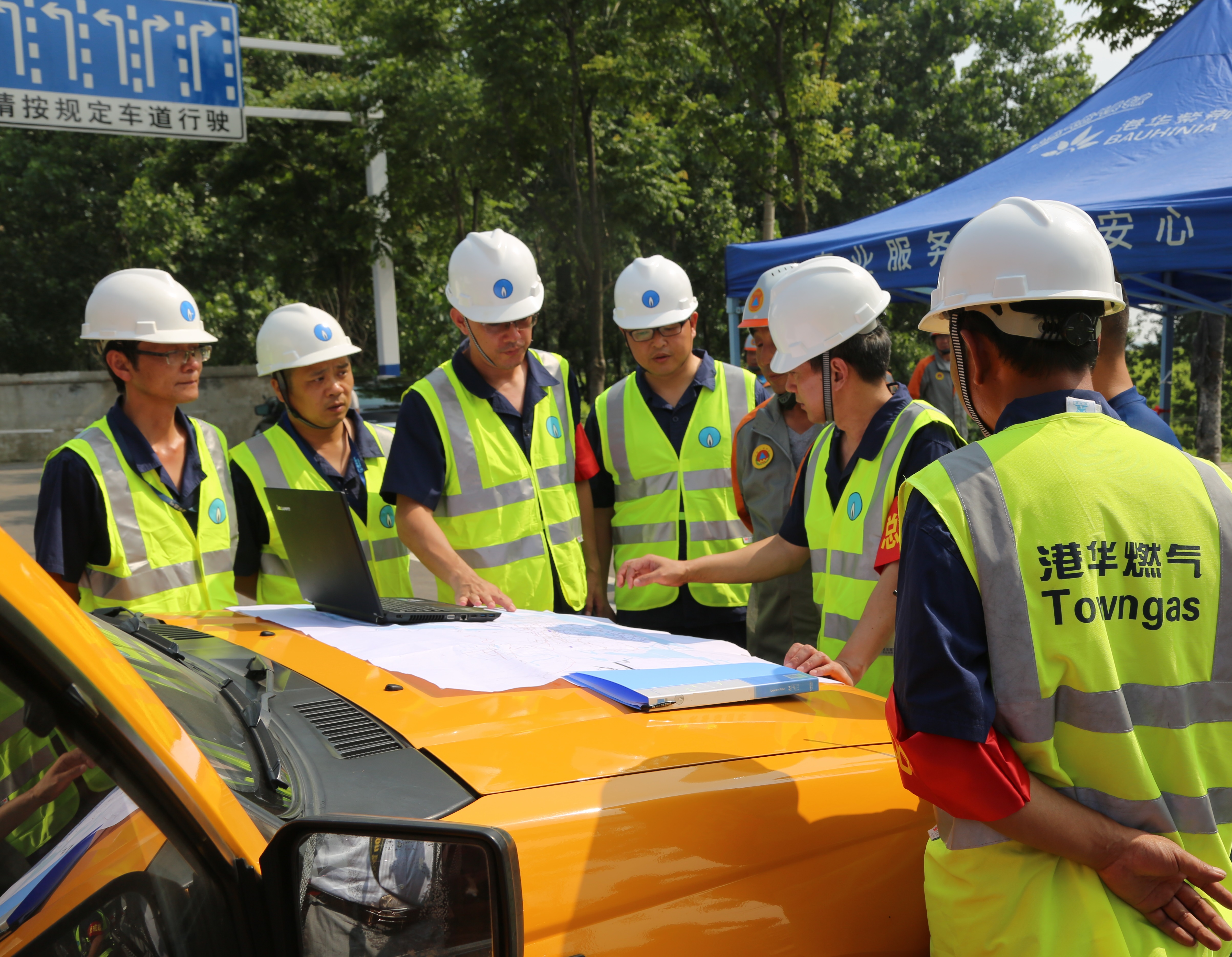 15時(shí)演習(xí)正式開始,接到報(bào)警后,消防、交警、港華及人防搶險(xiǎn)人員于10分鐘內(nèi)先后趕至現(xiàn)場,消防人員立即對泄漏區(qū)域進(jìn)行滅火及水霧稀釋。交警人員對泄漏區(qū)域路段進(jìn)行交通封閉。市人防協(xié)同消防、交警、港華燃?xì)鈱I(yè)搶險(xiǎn)隊(duì)設(shè)立現(xiàn)場聯(lián)合搶險(xiǎn)指揮部,迅速組織人員對現(xiàn)場進(jìn)行緊急疏散、警示警戒、交通導(dǎo)行、燃?xì)鉂舛葯z測等一系列應(yīng)急處置措施。在初步控制事發(fā)現(xiàn)場后,經(jīng)現(xiàn)場指揮部研判,決定關(guān)閉潛江路地下燃?xì)膺M(jìn)氣閥門并使用防爆風(fēng)機(jī)加速燃?xì)鉂舛鹊南♂?。?jīng)過有效處置,現(xiàn)場的燃?xì)庑孤┑玫娇刂?,周邊空氣中的燃?xì)鉂舛戎饾u將為0%PPM。15時(shí)35分,搶修人員進(jìn)入管道受損點(diǎn),對受損的PE200燃?xì)夤艿肋M(jìn)行修復(fù)。經(jīng)過24分鐘的緊張搶修作業(yè),成功完成管道修復(fù)。16時(shí),指揮部下令打開燃?xì)獾叵鹿芫W(wǎng)進(jìn)氣閥,恢復(fù)燃?xì)夤?yīng)。16時(shí)05分,經(jīng)檢測修復(fù)點(diǎn)無燃?xì)鈹?shù)值,安慶港華迅速組織客服及市務(wù)部相關(guān)人員進(jìn)行用戶端的恢復(fù)供氣。16時(shí)20分,演習(xí)圓滿結(jié)束,現(xiàn)場指揮部對演練進(jìn)行指導(dǎo)點(diǎn)評,而后,參演人員快速恢復(fù)現(xiàn)場、有序撤離。