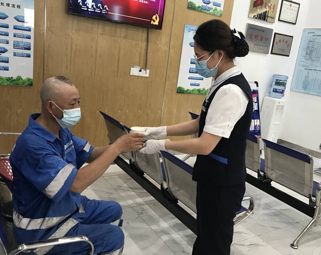 建設(shè)健康窗口。針對近期較為嚴(yán)峻的防疫形勢,多角度筑牢防疫屏障。除每日定時開展?fàn)I業(yè)場所消毒、堅持引導(dǎo)每位用戶掃描安康碼和測量體溫外,在引導(dǎo)員崗位投用移動服務(wù)設(shè)備,為市民直接提供信息查詢、業(yè)務(wù)派單等服務(wù),在高效服務(wù)用戶、減少用戶大廳停留時間同時,實現(xiàn)人員源頭分流,進一步降低了用戶交叉接觸可能。
