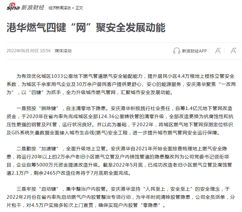 港華燃?xì)馑逆I“網(wǎng)”聚安全發(fā)展動能(轉(zhuǎn)載于新浪財經(jīng))