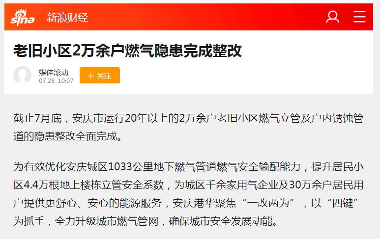 老舊小區(qū)2萬余戶燃?xì)怆[患完成整改(轉(zhuǎn)載于新浪財(cái)經(jīng))