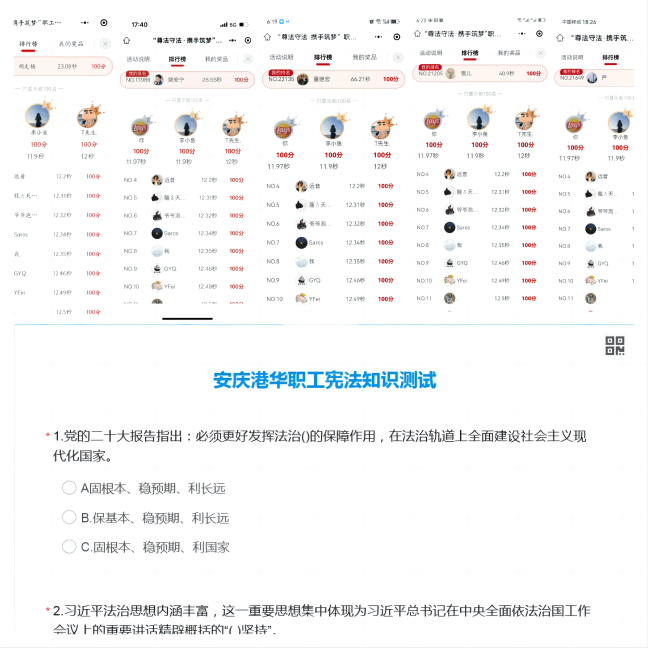 結合憲法知識與習近平法治思想相關內容,在全司范圍內開展職工法律知識能力測試,并積極組織員工參與“遵法守法 攜手筑夢”全省職工法律知識競賽。