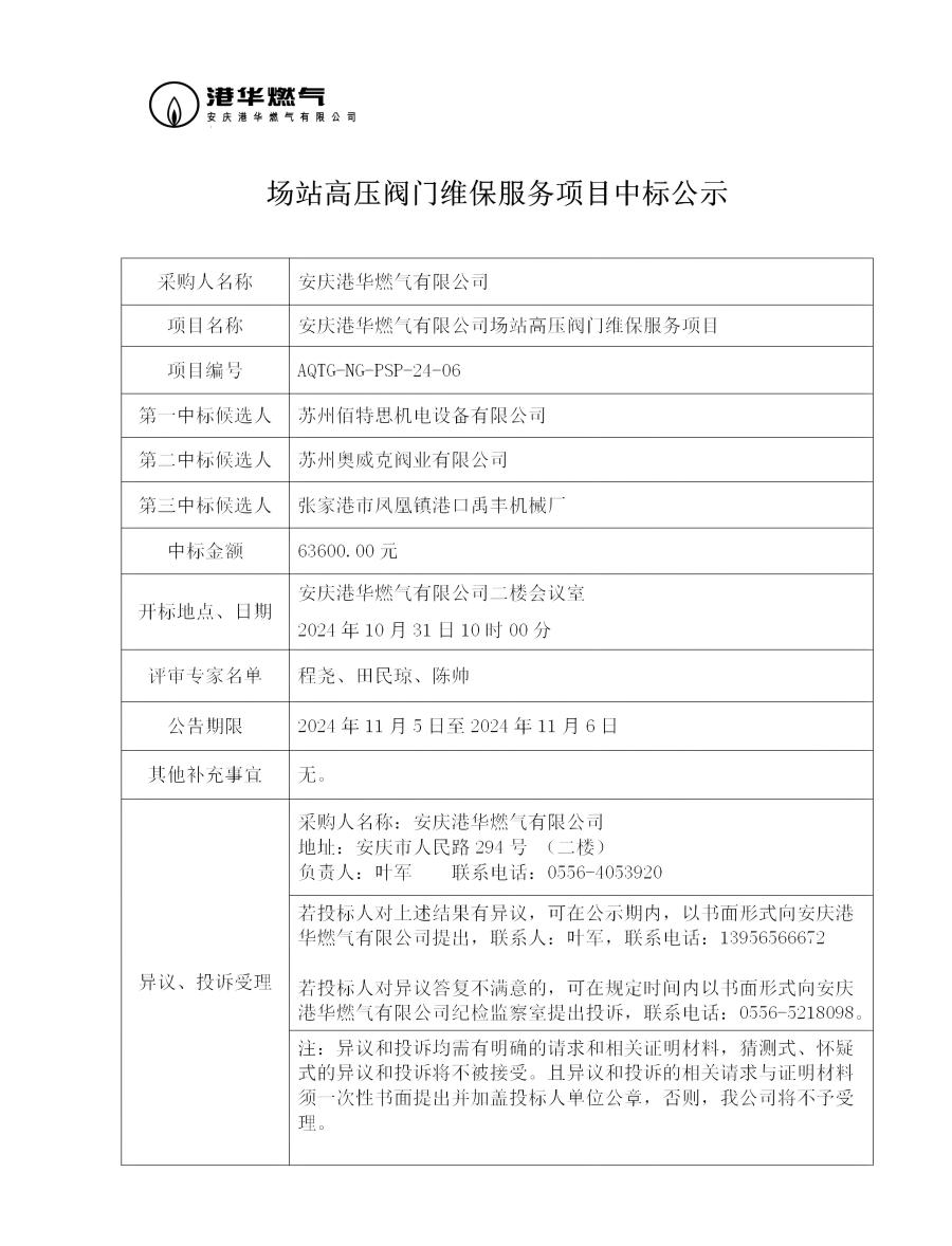場(chǎng)站高壓閥門維保服務(wù)項(xiàng)目中標(biāo)公示