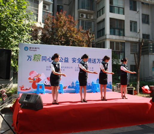 當(dāng)日,安慶港華的義工隊(duì)員和“藍(lán)焰”黨員義工們?cè)缭鐏?lái)到炮營(yíng)山社居委轄區(qū)的諧水灣小區(qū),撐帳篷,搭展臺(tái),搬物料,一場(chǎng)以“包粽子、看演出、講安全、傳文明”為主題的文化大餐陸續(xù)上演?;顒?dòng)現(xiàn)場(chǎng)熱鬧非凡,不少用戶正在港華燃?xì)獾摹傲鲃?dòng)服務(wù)車(chē)”前排隊(duì)進(jìn)行燃?xì)鈭?bào)裝和繳費(fèi),服務(wù)臺(tái)的工作人員一邊發(fā)放著燃?xì)獍踩麄魇謨?cè),一邊針對(duì)居民的用氣問(wèn)題耐心作答。而廣場(chǎng)正中央搭建的演出舞臺(tái)更是吸引不少居民駐足圍觀,安慶港華燃?xì)夂蜕鐓^(qū)居民聯(lián)合打造的精彩紛呈的文藝表演正在進(jìn)行。既有優(yōu)揚(yáng)的港華企業(yè)歌曲,又有優(yōu)雅的服務(wù)禮儀表演;社區(qū)阿姨們的廣場(chǎng)舞,舞出了歡樂(lè),舞出了自信,來(lái)自轄區(qū)學(xué)校孩子們有模有樣的黃梅戲表演,讓我們看到了傳統(tǒng)戲曲文化的美好傳承;穿插其間的燃?xì)獍踩R(shí)有獎(jiǎng)問(wèn)答更是引得眾人踴躍參與,掌聲、歡呼聲此起彼伏。而臺(tái)下社區(qū)阿姨和港華義工在欣賞精彩文藝演出的同時(shí),還不忘巧手裹粽,不多會(huì),桌上就擺滿了幾百只飄著粽葉香的愛(ài)心粽,既弘揚(yáng)了傳統(tǒng)文化,又增進(jìn)了企業(yè)和居民之間的感情,現(xiàn)場(chǎng)呈現(xiàn)出一片文明和諧,奮進(jìn)向上的氛圍。